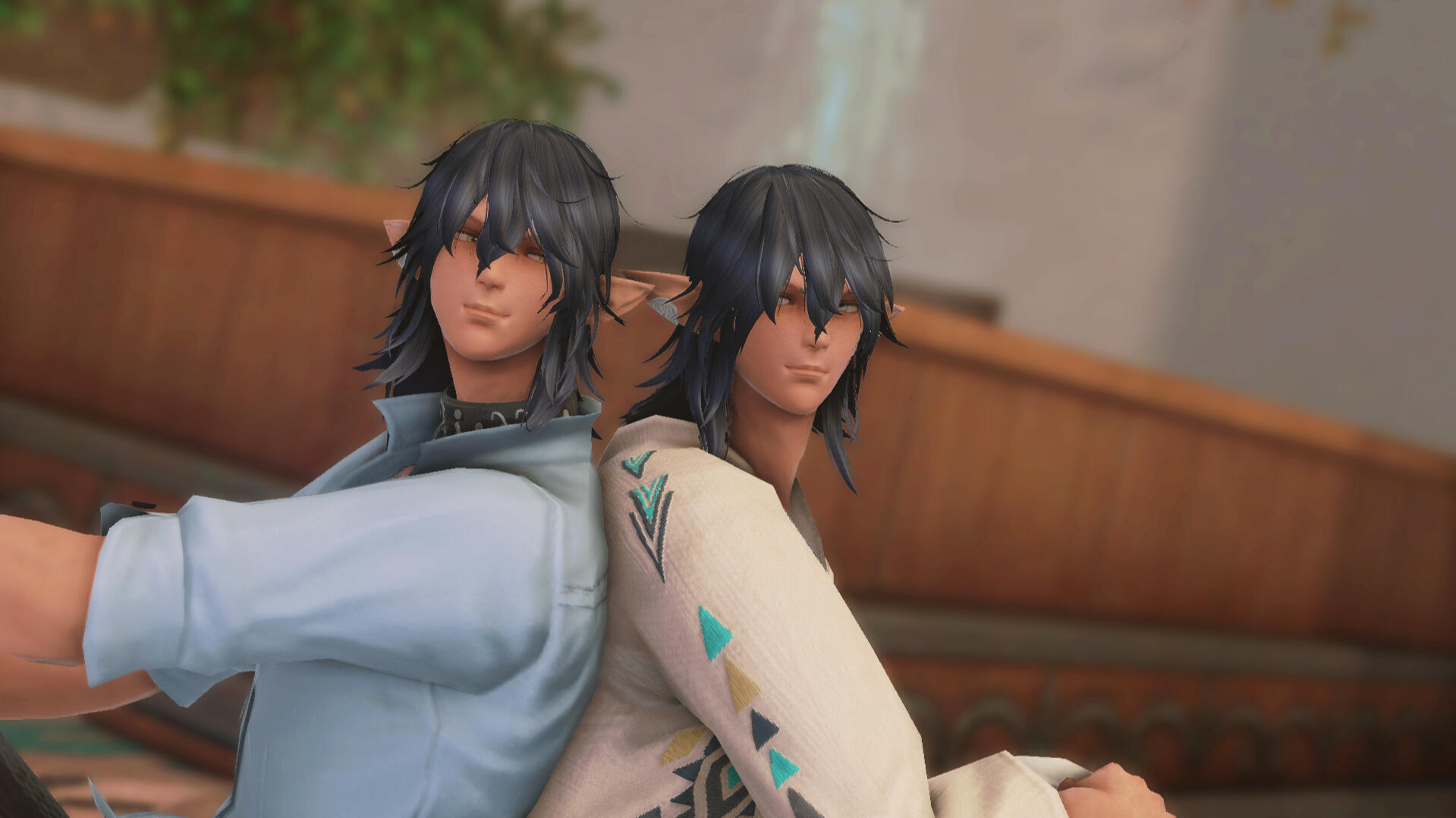 His background: CW Death, traumatic deathsBorn an Elezen in Ishgard, his parents were travelling minstrels while he was growing up so he never really called one place home. He learned how to play many instruments from them and even learned many different dances. Somewhere in his teens he lost his parents in a fire, unable to save them as they were pinned under a falling beam and burned alive in the tavern they were playing in. Now alone and only with Minato by his side, Shato took it upon himself to earn gil for the both of them and in any way possible. He first took up barding, making a name for himself in the major cities but despite his tries he was unable to make enough gil for himself and Minato to live on.Him and Minato fled to Ishgard where they stayed for a while, playing their songs there until the Calamity hit. Some time during the Calamity, Shato lost Minato and was unable to find him. Months pass and Shato gave up the idea of waiting for his brother. Afterwards he left a note with the innkeep telling her he was going back to Limsa and for his twin to meet him there if he ever came looking for him.