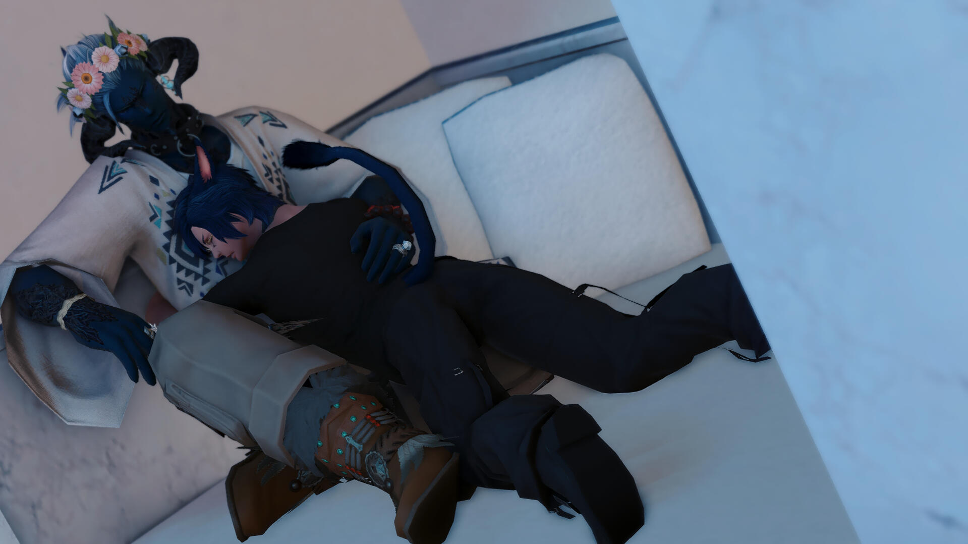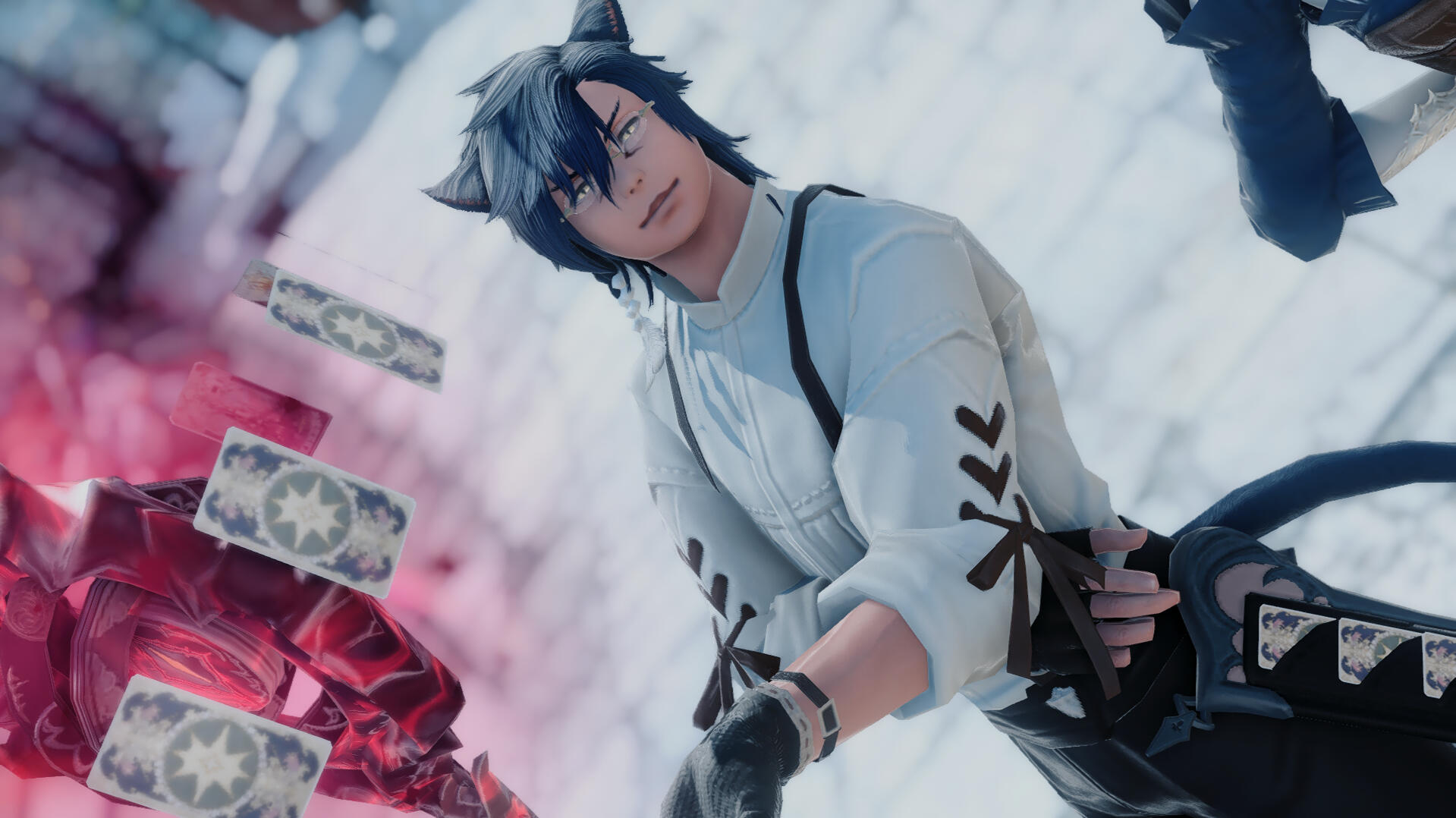Currently unable to channel much aether due to his old dependency on Ketamine, he is exploring other options that don't include being thrown from the Steps of Faith as a heretic.Finding love in odd places, Shato has formed a relationship with the Warrior of Light, Ffamran as well as the Garlean Traitor, Drustinus pyr Lamorak. He has settled down in a house in Limsa, making room at his house for both Ffam and Drust to spend the night.During the End of Days, Shato learned that Ffam was the Warrior of Light while he was trying to usher the Sahagin to safety. A memory froze him in his place and the memory of his brother dying in his arms in Ishgard resurfaced. When Ffam touched him to move him, the Echo showed the Warrior of Light this specific memory.Both Ffamran and Drust came to his rescue when he was trapped in a room at the Forgotten Knight with Alric. All three men had a hand in killing the merchant, with Shato leaving with a few more mental scars, a few more invisible cracks in his psyche. It took him months to recover from the mental, emotional and physical toll that his body went through. Even now, he wonders if he will ever forget the trauma.